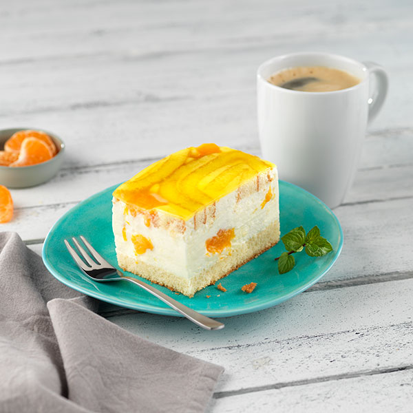 26.10. – 08.11.23 (montags bis freitags) 1 Stück Mandarinen-Sahne-Schnitte + 1 Tasse Kaffee Gerne auch mit einer Lavazza-Kaffeespezialität gegen kleinen Aufpreis.